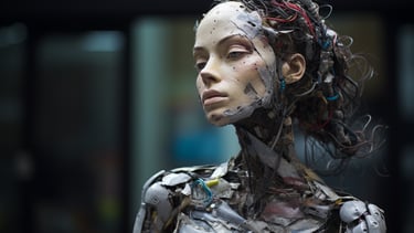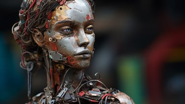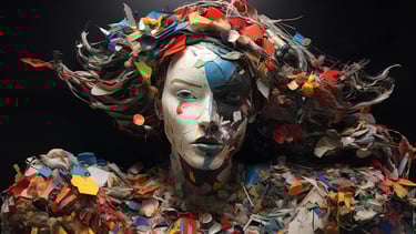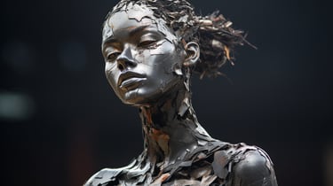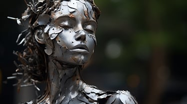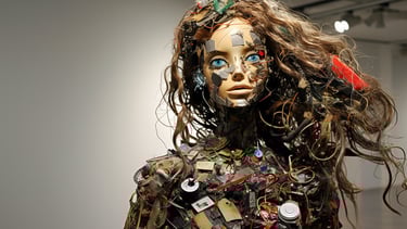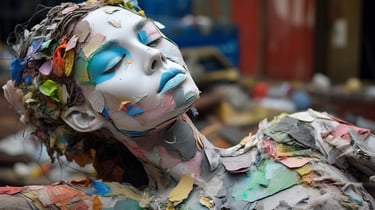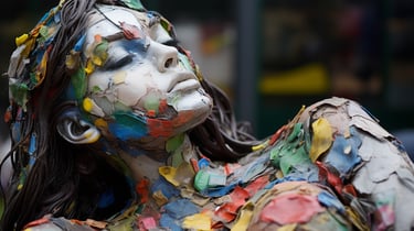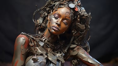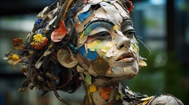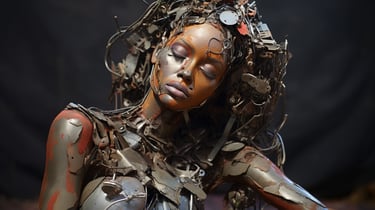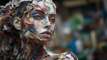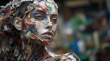 A striking meditation on value, perception, and reclamation - both in the material and human sense. The collection transforms discarded waste into evocative, sculptural portraits of the female form, forcing the viewer to confront the paradox of beauty found in abandonment. Through layered textures of rusted metal, shattered plastic, and discarded fragments, each piece carries an undeniable soulfulness, gazing back at us with a haunting presence that transcends the sum of its parts. The interplay between brokenness and resilience makes this collection a visceral confrontation with society’s patterns of disposal - whether of objects, people, or self-worth. It invites contemplation on the dignity that remains, even in the remnants left behind.