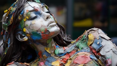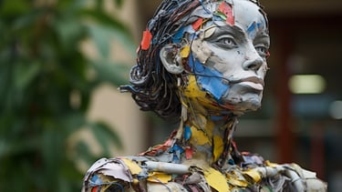 The use of repurposed material does not diminish their grace - it elevates it - embedding life itself into every imperfect layer. These figures are not just art — they are a protest, a plea, and a warning wrapped in one.